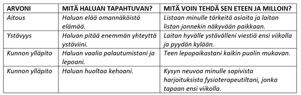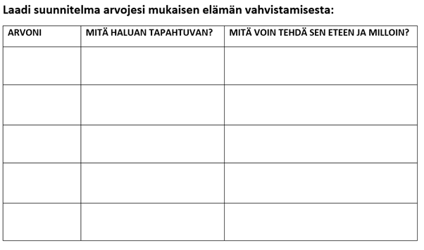 Arvojesi mukaiset tavoitteet ja teot- harjoitus